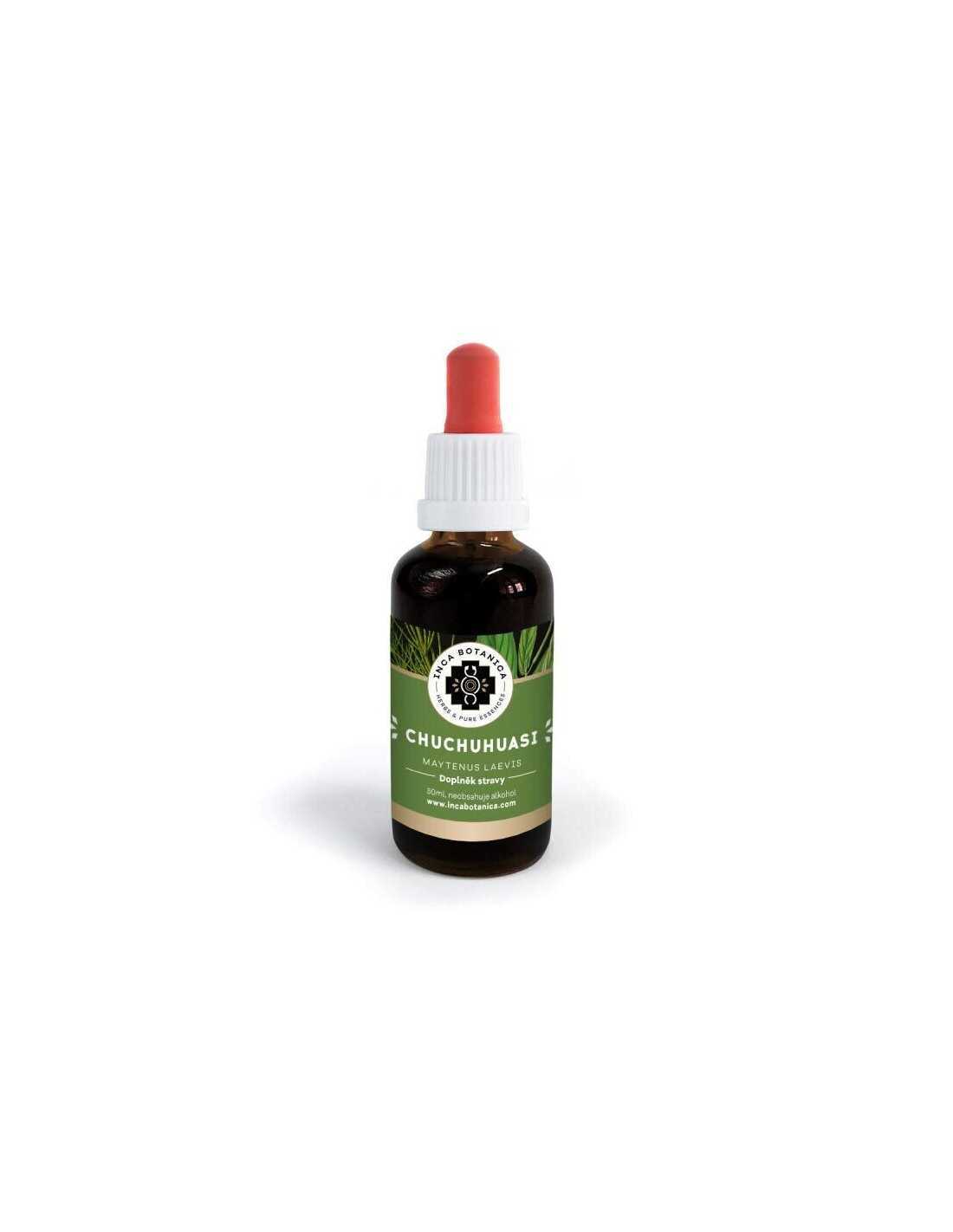 Složení: Chuchuhuasi (Maytenus laevis-Cortex) čištěná voda, glycerol, sorban draselný, kyselina citronová, neobsahuje líh