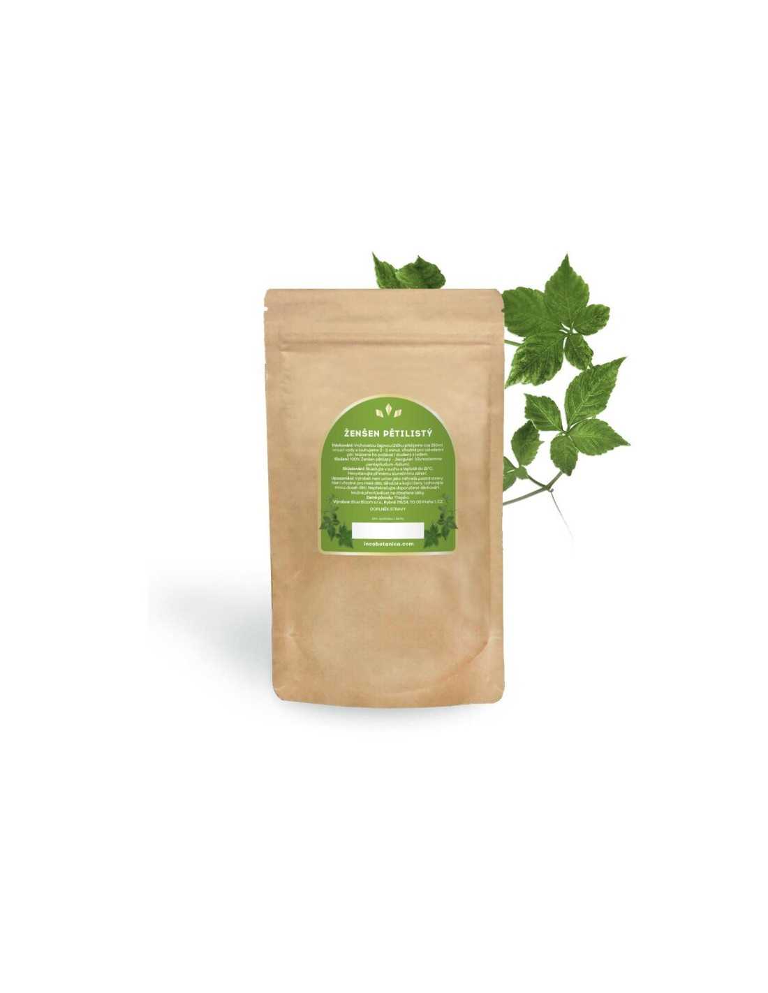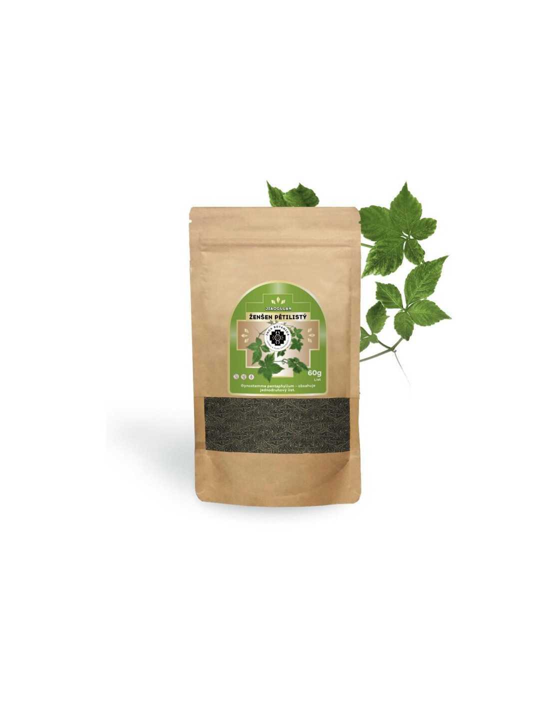 Der fünfblättrige Ginseng trägt den tschechischen botanischen Namen Gynostema five-leaved und wird in seinem Heimatland Jiaogulan genannt. Es handelt sich um eine kürbisähnliche Kletterpflanze, die mit dem echten Ginseng nichts gemein hat, aber wegen ihrer ähnlichen Wirkstoffe von den östlichen Völkern so genannt wurde.